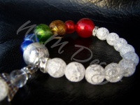 A csakrák színeinek megfelelő színű ezüstfóliás üveggyöngyök